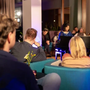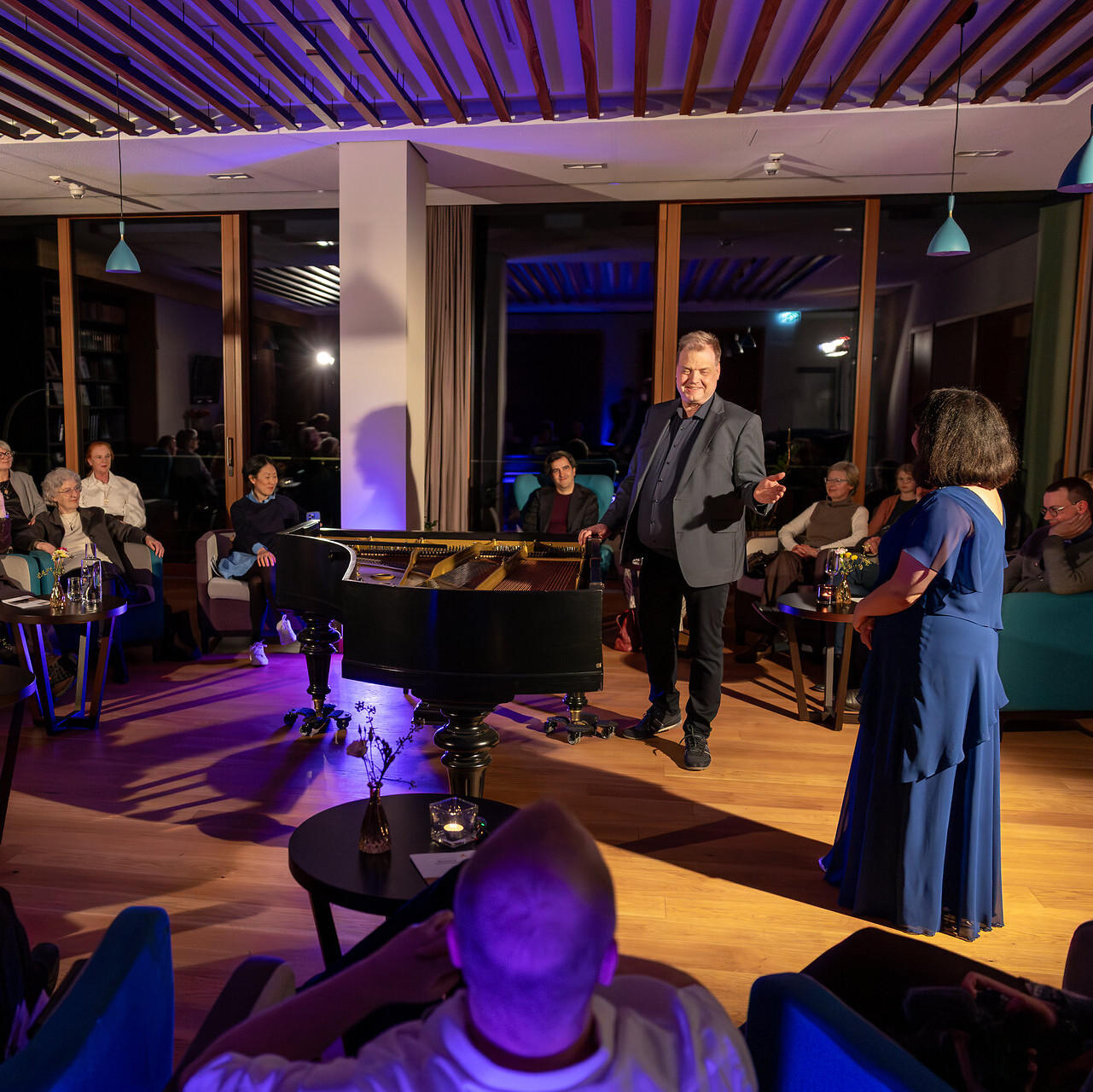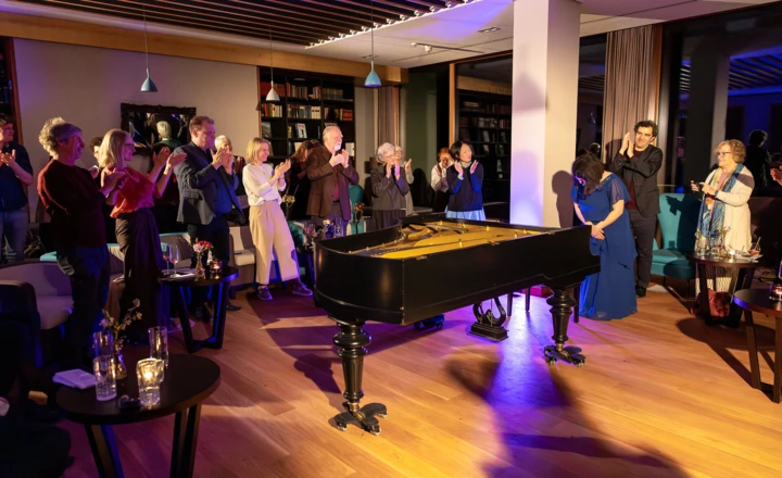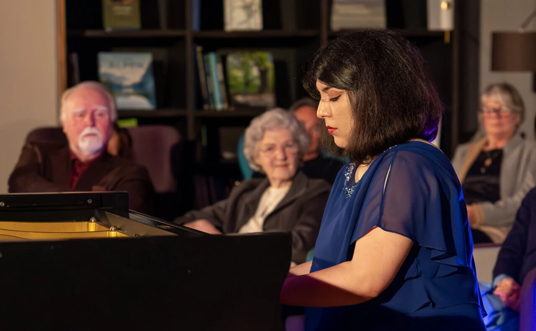 An dem historischen Blüthner-Flügel in der Bibliothek "LiterArt" erweckte Schaghajegh Nosrati den Geist der ursprünglichen Schubertiaden zu neuem Leben: Schuberts Werke öffnen Räume für innere Bewegung und gemeinsame Aufmerksamkeit.