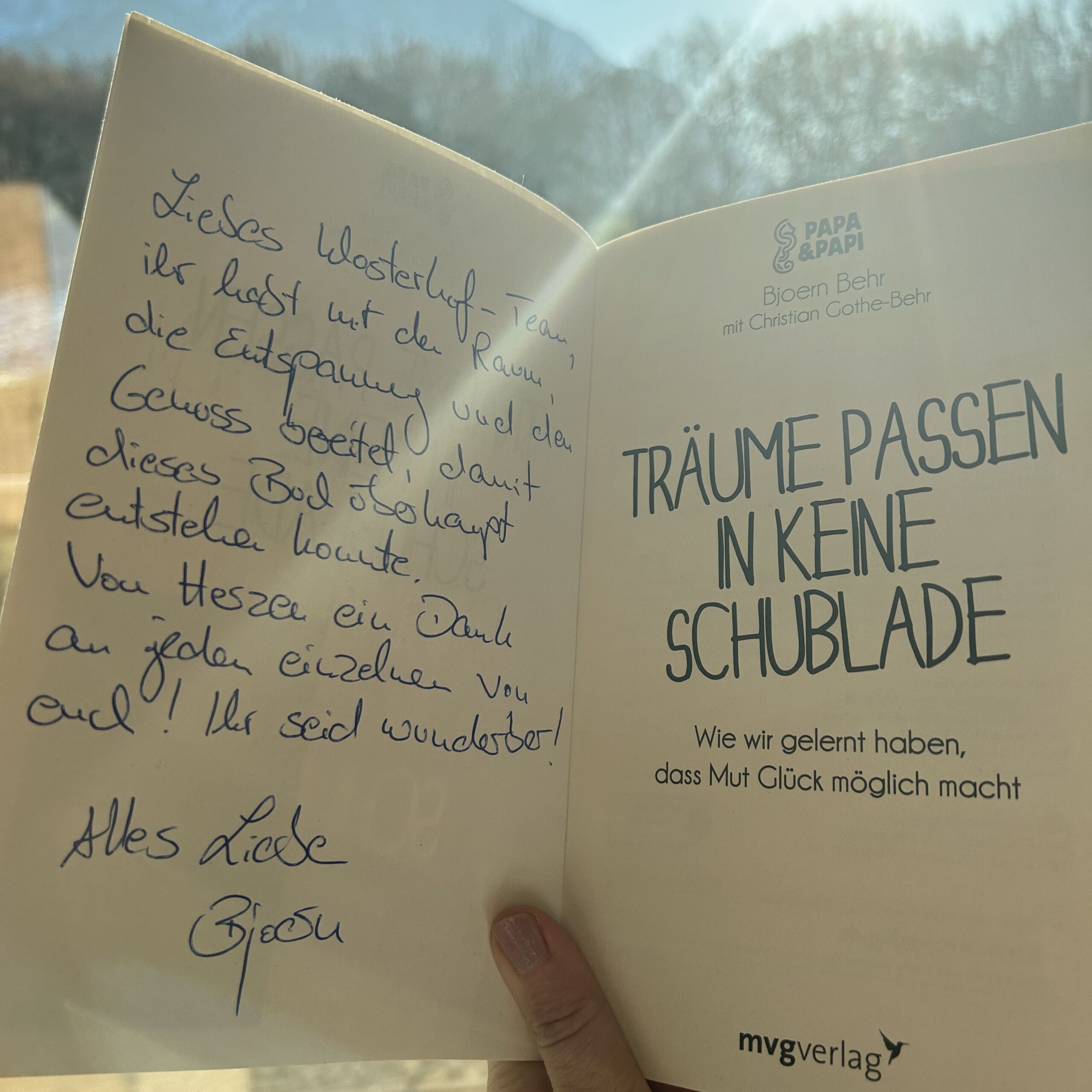 Wussten Sie schon? Bjoern hat bei uns im Klosterhof den nötigen Inspirationsplatz gefunden, um sein erstes Buch fertigzustellen. Auch wir haben ihn als ehrlichen und authentischen Gast kennenlernen dürfen, dementsprechend hat das Buch auch einen Ehrenplatz in unserer Bibliothek LiterArt mehr als verdient.